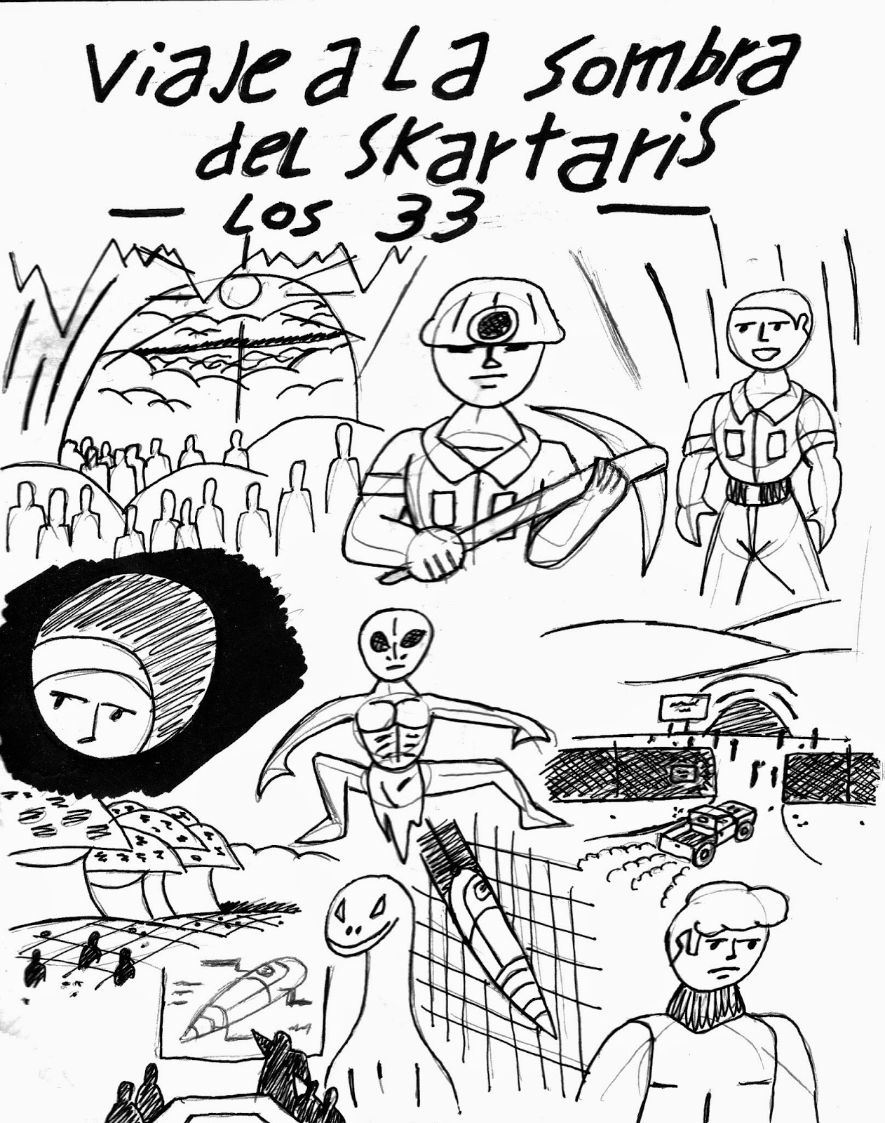 Este dibujo esta hecho en homenaje al valor de los 33 mineros de la Mina San Jose.
